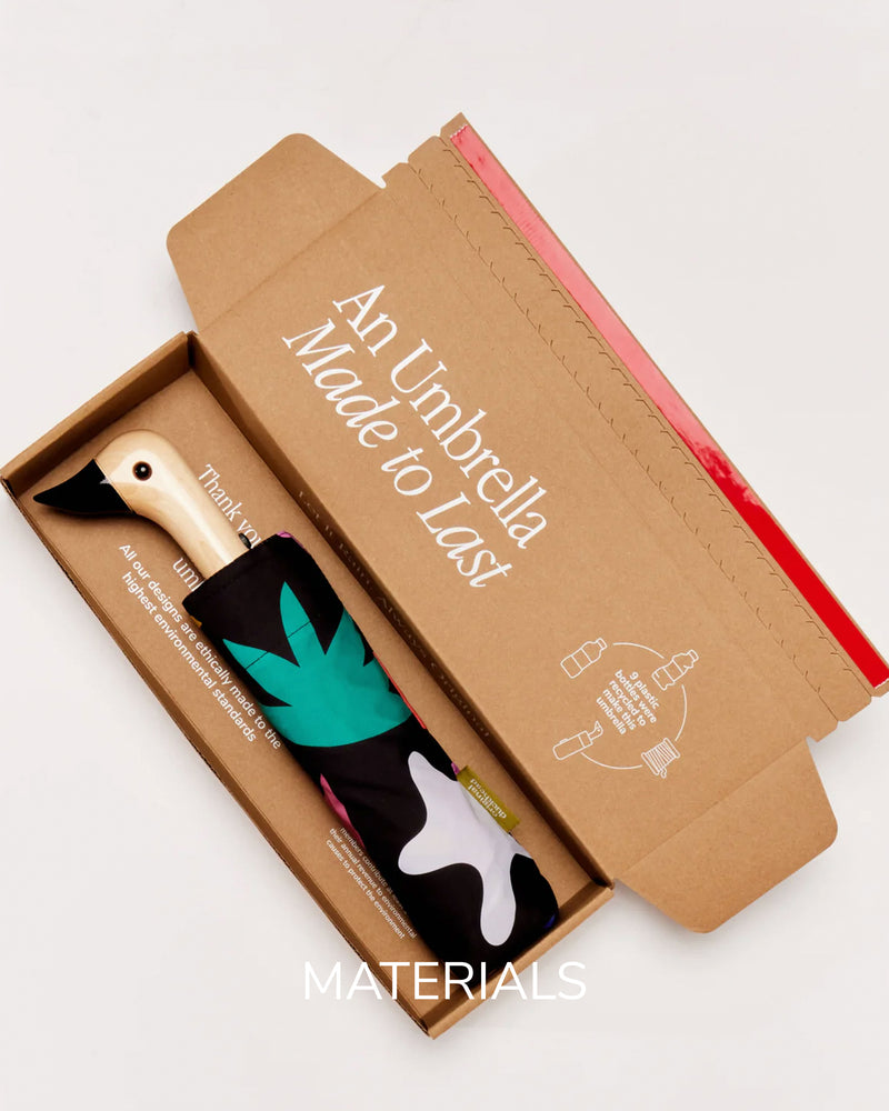 Handmade with premium materials, backed by a two-year warranty. Sustainable umbrellas. Built to last. 100% Recycled materials.