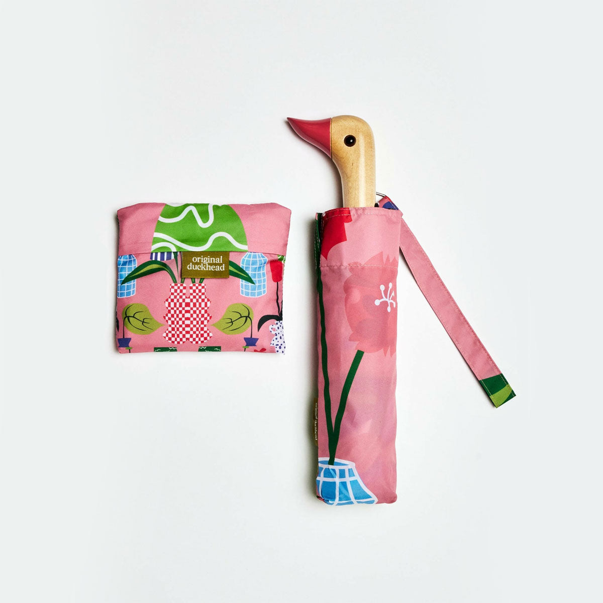 This bundle features a matching umbrella and tote adorned with artistic vase motifs. Both crafted from recycled bottles, this stylish duo brings artful charm to every outing.