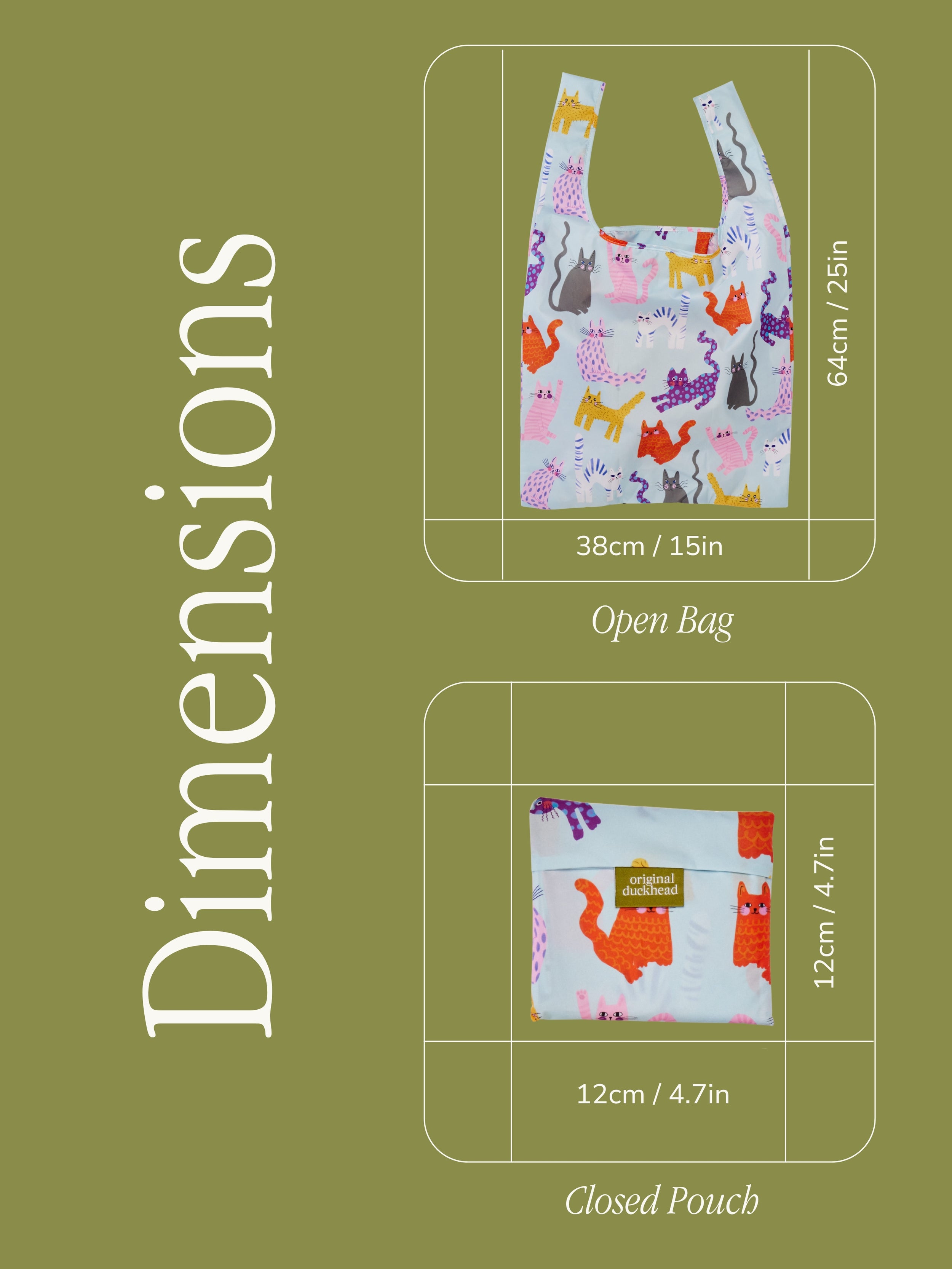 Meet our Arty Cats Extra Bag in Ice Blue - a reusable tote made from 6 recycled plastic bottles and designed to match our best-selling umbrella. Originally handmade from surplus umbrella canopies, this eco tote bag now continues the story of creativity and conscious design.
