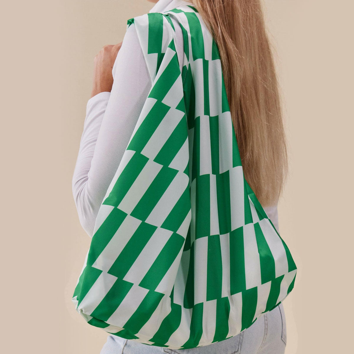 This bundle pairs our green striped umbrella and reusable tote for a coordinated, eco-friendly look. Both are crafted from recycled plastic bottles - bright, durable, and ideal for gifting.